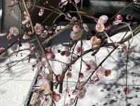 寒波にもかかわらず、治療院の庭に可憐な梅の花が咲きだしました。
