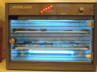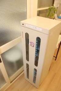 待合室には、衛生的なスリッパ専用の殺菌保管庫があります。